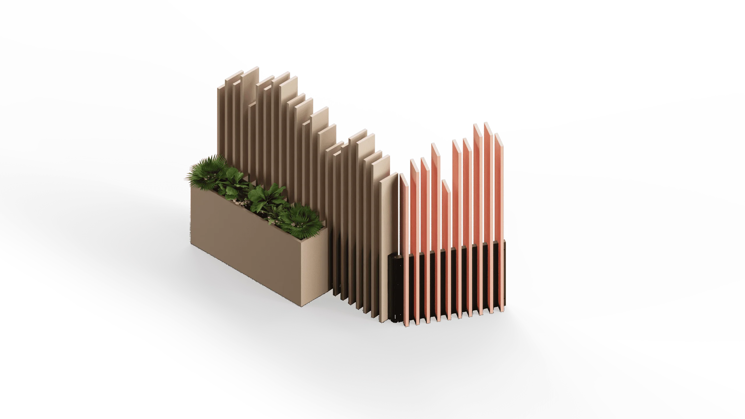 Fabricada con materiales resistentes y acabados cuidados, el separador con jardinera está pensado para un uso intensivo y una fácil integración en distintos estilos de interiorismo, desde los más contemporáneos hasta los más sobrios y corporativos. Su versatilidad la convierte en una pieza ideal para oficinas, hoteles, restaurantes o espacios públicos, donde la flexibilidad y el diseño son clave. Gracias a sus diferentes elementos, podrás realizar la composición que mejor se adapte a tus necesidades, pudiendo crear una pieza de separación totalmente recta o con distintos ángulos.