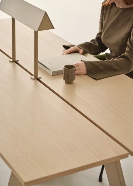 - Espacios de trabajo colaborativo: la versión modular facilita crear largas superficies compartidas, ideal para equipos que requieren comunicación constante.