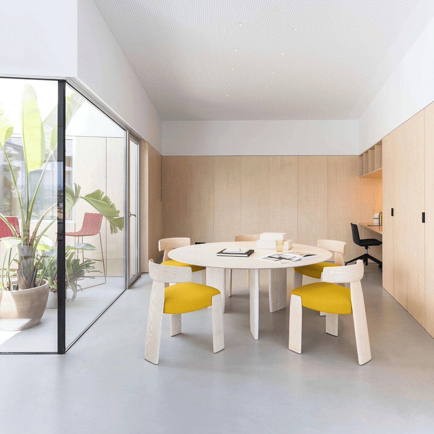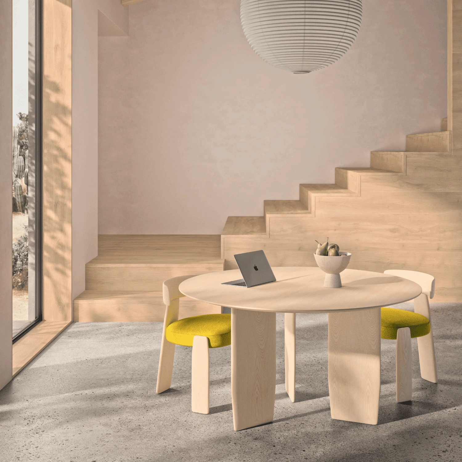 La mesa Oru es una pieza de diseño contemporáneo que combina funcionalidad, presencia escultórica y sostenibilidad. Su estética se caracteriza por geometrías suaves y redondeadas, que aportan un equilibrio visual perfecto tanto en entornos domésticos como en espacios profesionales. Gracias a su lenguaje formal, esta mesa encaja con naturalidad en comedores, salas de reuniones, oficinas abiertas o áreas de espera en hoteles y restaurantes, aportando una sensación de confort sin renunciar al estilo.